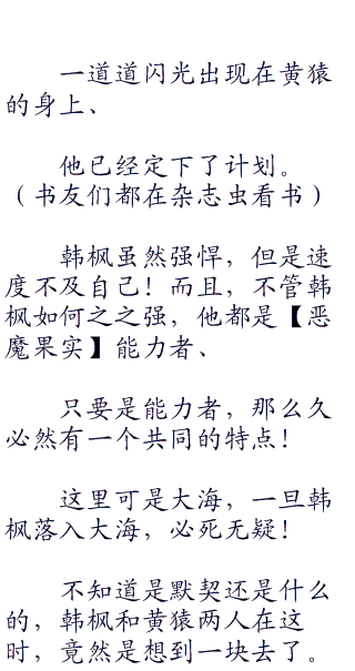 韩枫笑了笑,黄猿最强的就是他的【恶魔果实】能力!