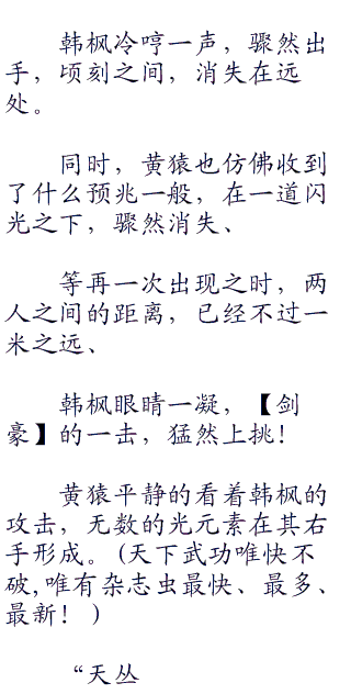 见此,韩枫暗骂这个老家真tm的猥琐,自己无法元素化的事情,恐怕已经被其猜出来了。
