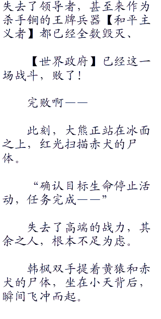 韩枫冷笑一声,乘坐着小天,以极快的速度朝着冰面飞去。