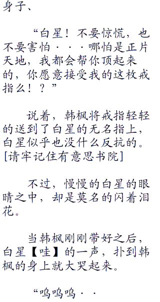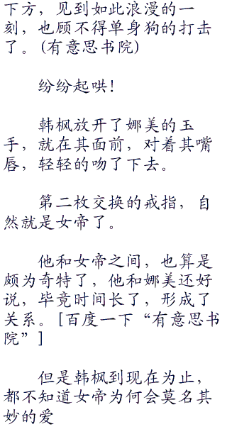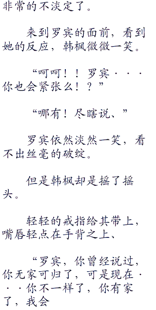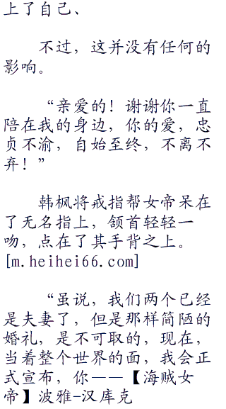 韩枫轻抚着娜美的玉手,轻轻的将戒指带进了其无名指上。