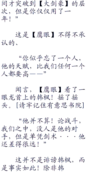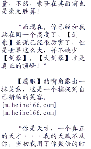 “而在其后的半年之内,你从一个小小的剑士,蜕变成为了一个足以可以和我抗衡的【剑豪】级别的人物了!”