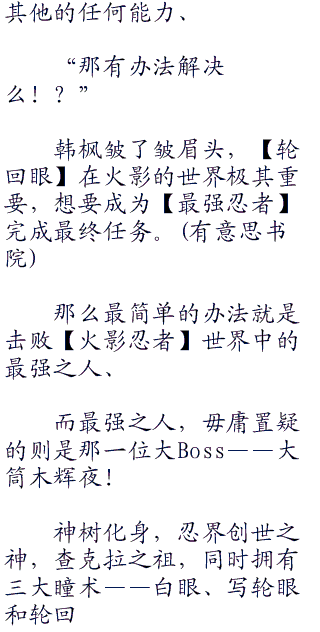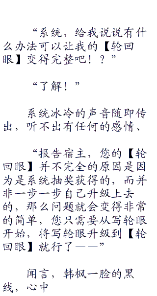 “这是因为,宿主您的【轮回眼】并非是从【写轮眼】一步一步升上来的缘故!”