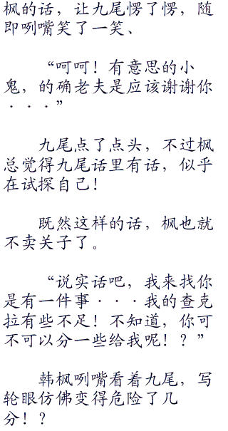 九尾看着枫那年轻的脸孔,只是莫名的歪了歪头、