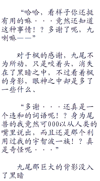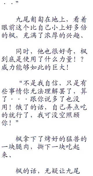 九尾便是三天两头的跑到枫这边来,也不知道要干什么!