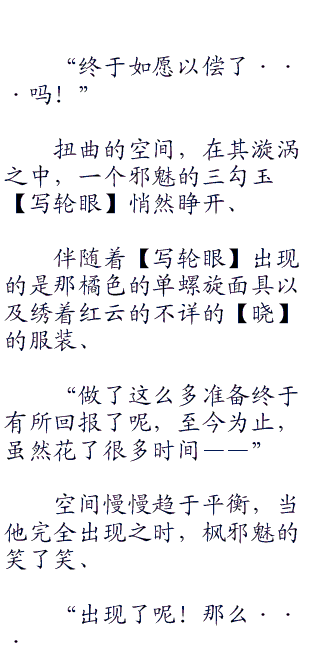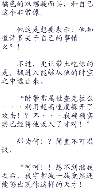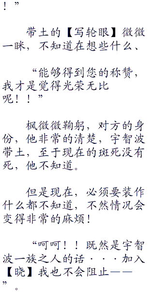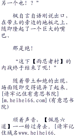 虽说也有着【佩恩六道】忍术的意外性,但是结果还是让枫觉得大跌眼镜!
