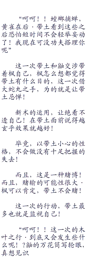 或许可以认为,幻术应该就是大蛇丸的软肋!所以·大蛇丸才会想写轮眼想疯了吧!