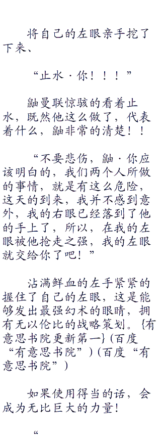 一面说着,止水毫不犹豫的伸出左手放在自己的左眼之上,狠狠一用力,就在鼬根本来不及阻止的情况下、