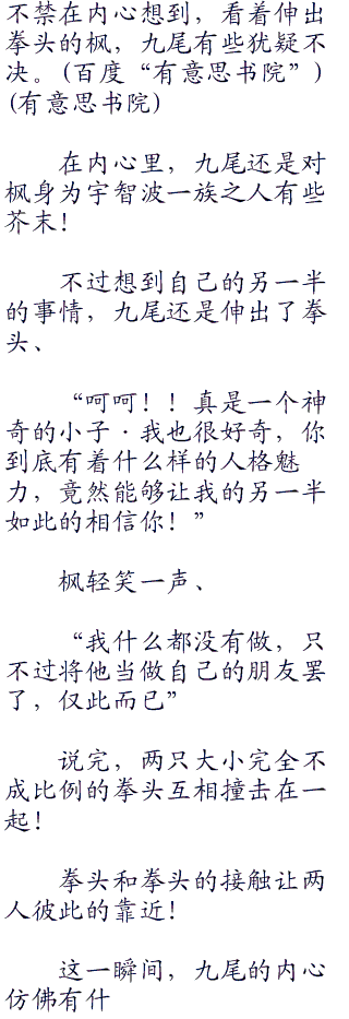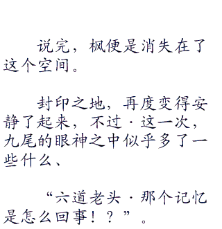 在避免枫发现的情况之下,两只九尾开始了内心的沟通。