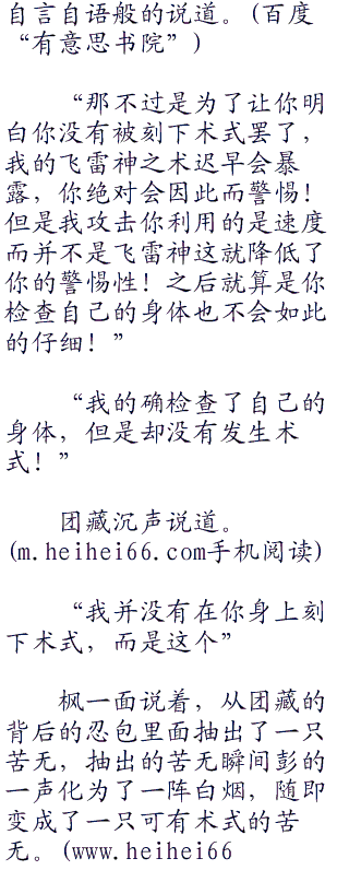 “是觉得奇怪么!?不用觉得奇怪·打从一开始你就已经中计了!你的身上,已经被我刻下了飞雷神的术式了!”