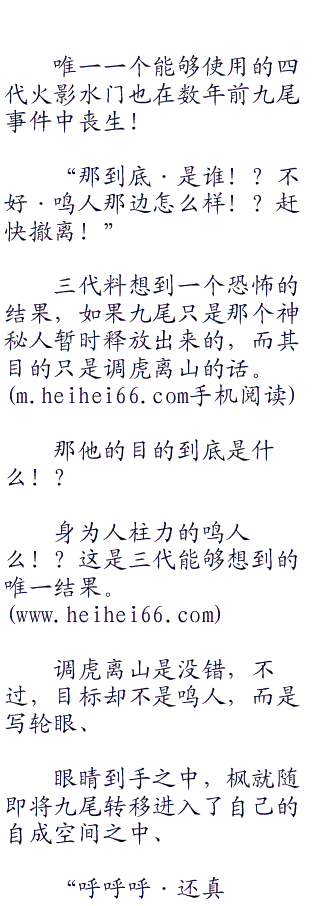 枫想也不想的躲开,随即继续追击,但是火球最初的目标并不是枫,而是止水的眼睛。