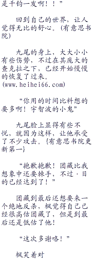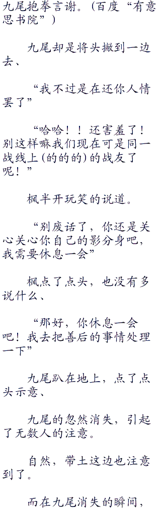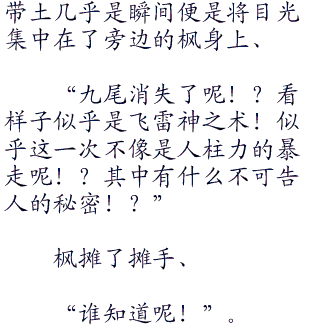 自从当初和九尾一战之后,枫还是第一次如此释放力量!让他都觉得手有些生疏了。