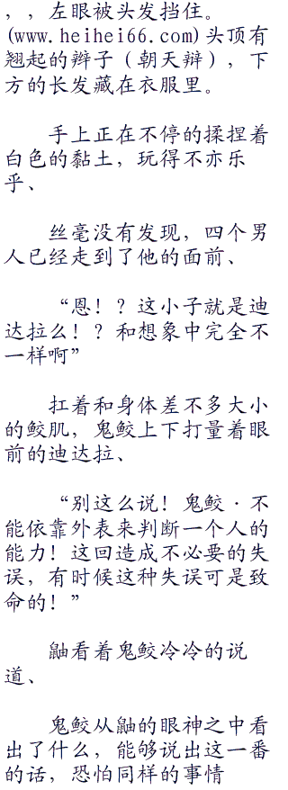 鼬只是面无表情的看着鬼鲛和枫两人,但是其对话的内容,蝎倒是觉得有些奇怪、