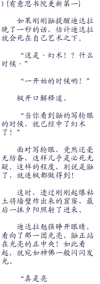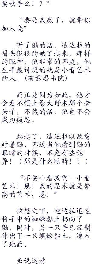 似乎是有些跟不上迪达拉的节奏,鼬摇了摇头!