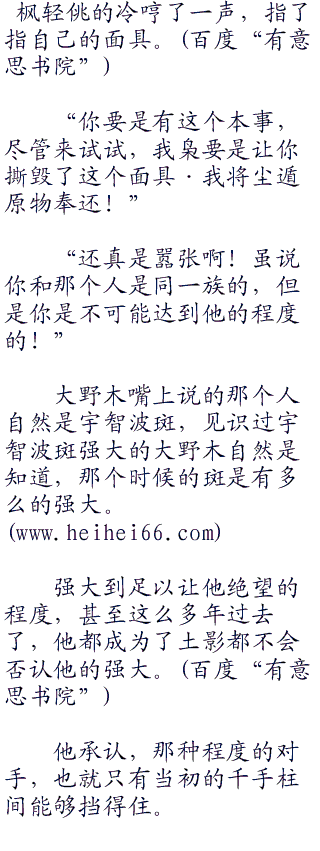 不仅仅是迪达拉呆住了,就连面对着枫的大野木、黑土和赤土都呆住了、看着带着面具的枫,充满了鄙夷!