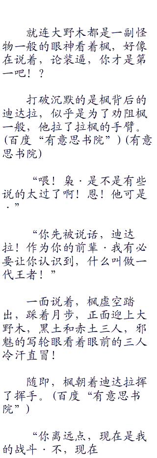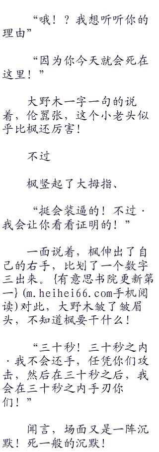 大野木看着枫,眼神之中充满了嘲笑,嘲笑他的不自量力!虽说自己有些看不透,但是绝对没有到达被手刃的地步、
