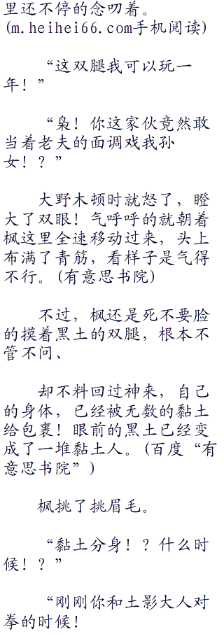 枫摇了摇头,装出一副好色的样子,不停在黑土修长的双腿上摸来摸去的。