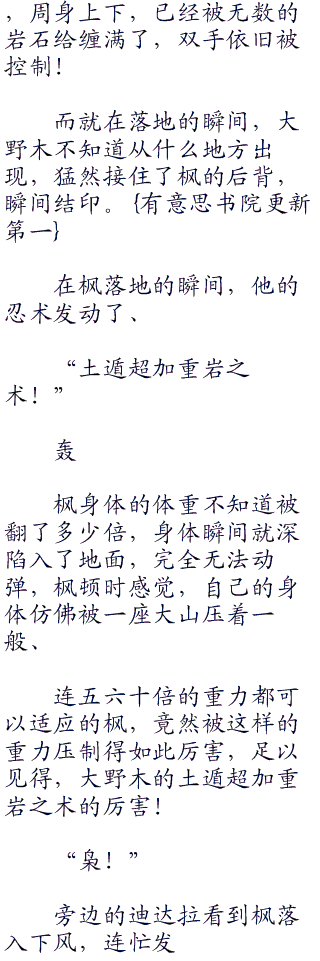 同时,枫也对大野木的拳头感到惊奇,不·更多的是对大野木的土遁超加重岩之术感到惊奇。