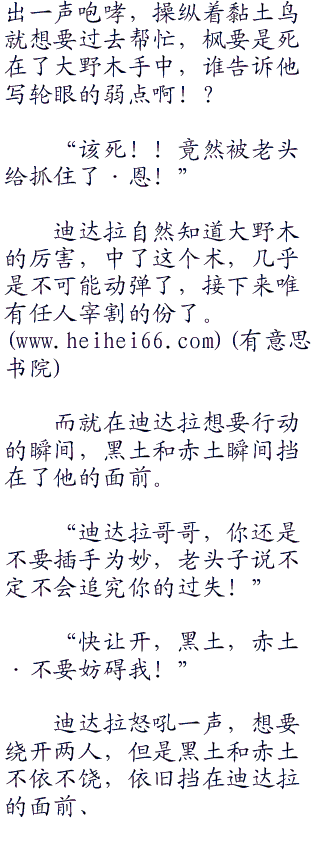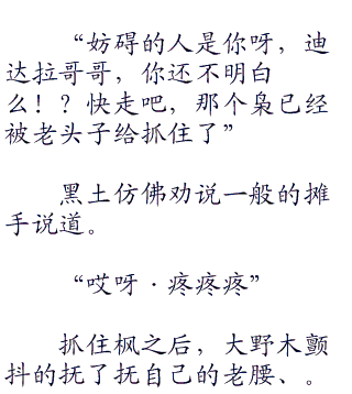 忽然出现的枫,让黑土吓了一大跳,这才反应过来,想要逃离,却不料,枫一把抓住了黑土的手、