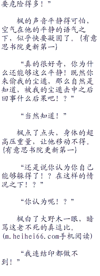 大野木说着,缓缓的悬浮在空“零零零”气,居高临下的看着枫,以一种胜利者的姿态看着他,脸上充满了平静、