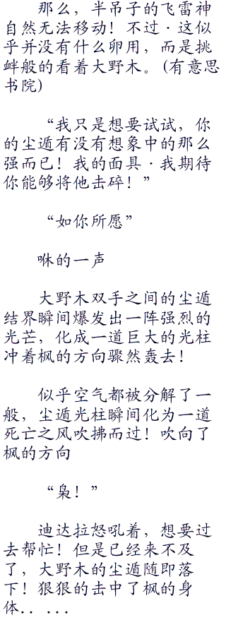 看样子大野木也对枫极其的忌惮!如果现在没有下杀手的话,待会还不知道会发生什么、