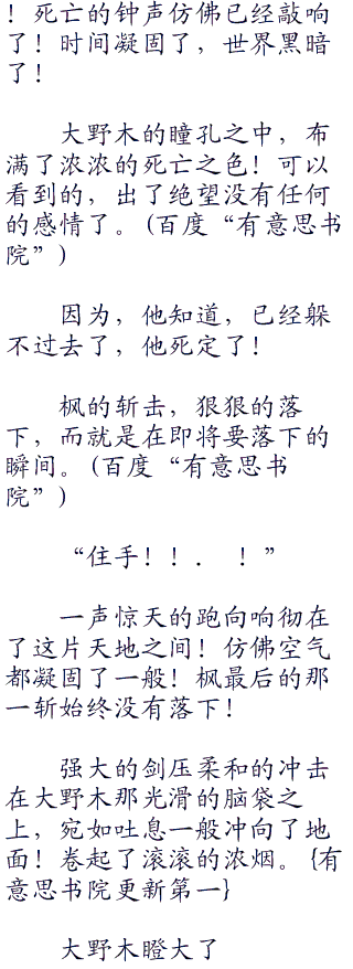 顿时,大野木被斩成了两半!不仅仅是大野木这个小老头,甚至连大地,连天空都被斩裂了、