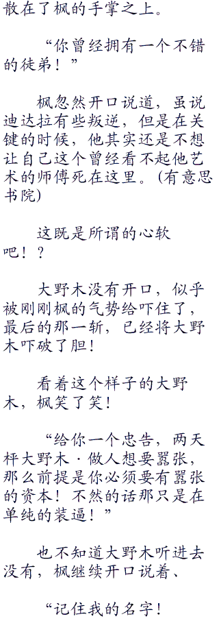 猛然一转身,而就是在转身的那一瞬间,迎面而来的,是枫的竖直斩击!
