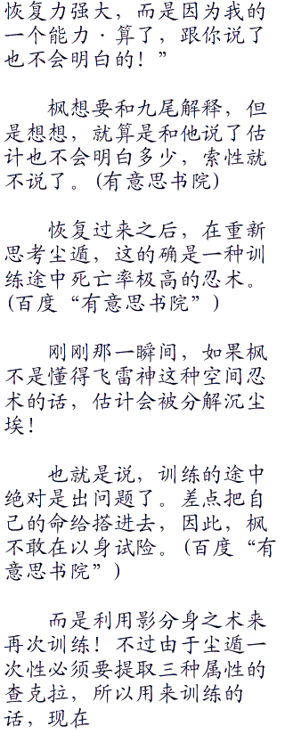 九尾见枫这么坚持,也没有在强求,他也想要知道,枫到底要如何恢复!?