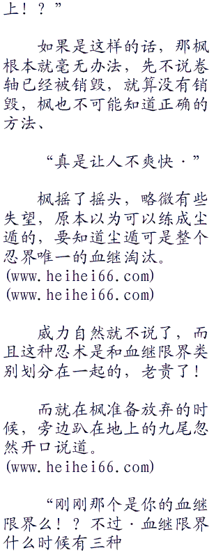 看到枫的状况,九尾也吓了一跳,连忙跑过去,看看枫的情况!