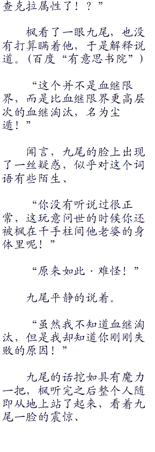 九尾挑了挑眉毛看着枫,觉得很不可思议。