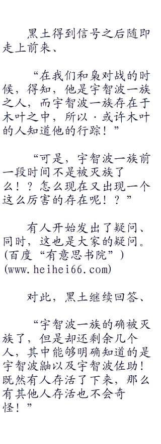 听九尾这么说起,枫才想起,九尾的查克拉能够随意变换形态,就宛如自己的手臂一般,非常的方便。