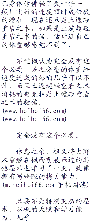 枫试着操纵尘遁查克拉,只需要非常微小的查克拉,沐浴于全身之上之后,随即,枫的双脚开始离开了地面!