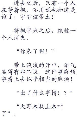 想到这里,枫忍不住大笑了起来,然后想到了和大野木战斗的情景,随即开始猛然结印、