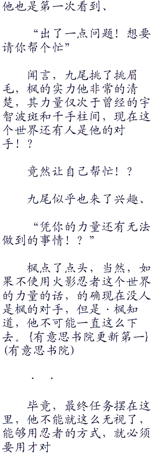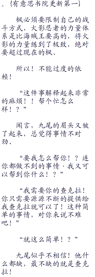 枫现在心里非常的乱,感到有些懊恼,因为这一切都是他自己造成!