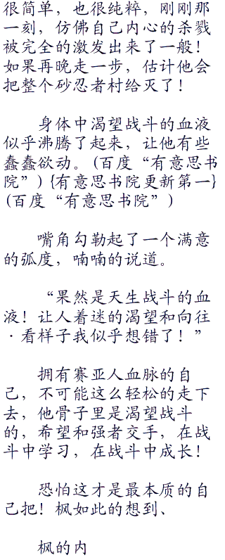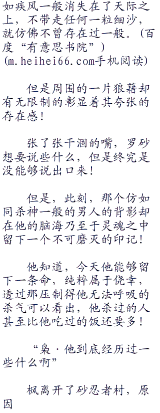 我爱罗那小小的身体被枫单手提了起来,整个人呈现出一个虾米的弯曲,身体之上,无数的细沙悄然的滑落。