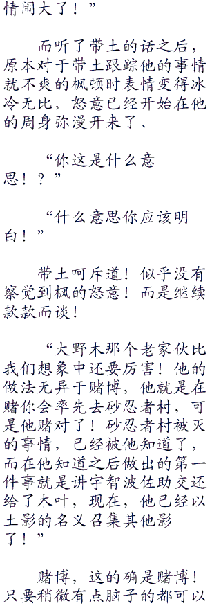 正因为如此,带土才会对枫的做法感到不满,完全不考虑大局!