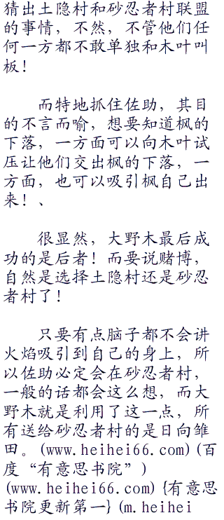 “在确认到佐助不在砂忍者村之后,你就不应该再出手的,那个时候立刻转向大野木那边才是你应该做的事情,不是么!?”