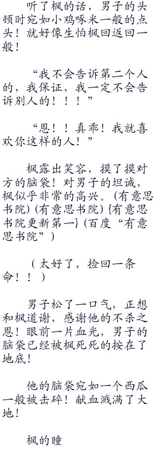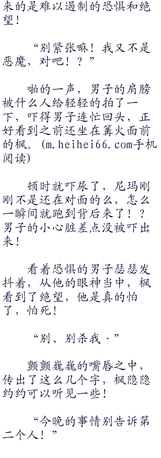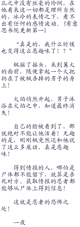 而在枫和男子面前还有一堆不停的燃烧着的篝火!气氛诡异得可怕!