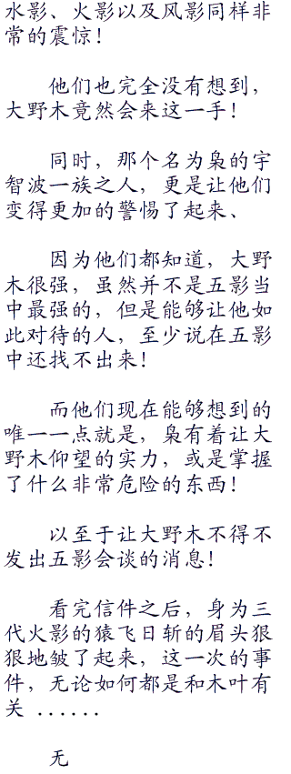 毕竟,五影会谈不是什么简单的事情,自从五影成立以来都没有举行过几次,而现在大野木这个老家伙竟然为了一个人而召开!