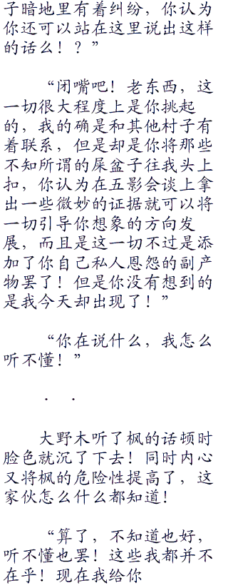 “哼!说什么话啊!!刚才我们讨论的话你都听到了吧!?反正又是什么阴谋罢了,没有听的必要!你出现在这里,就已经说明了一切!”
