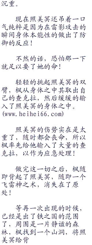 现在枫可以感受到,照美冥就只剩下一口气了,什么时候死掉都不会奇怪!