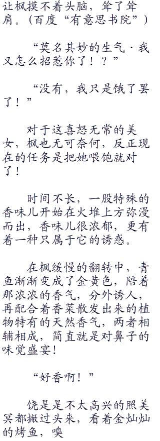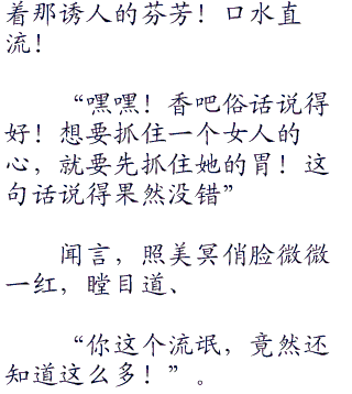 “好好好,我是怨妇·你还是少说两句吧,留着力气待会吃东西!”