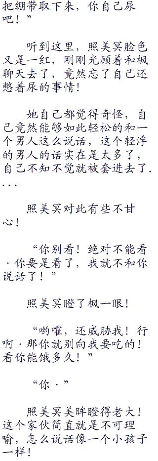 看着枫不说话说了,照美冥就知道这家伙绝对在自己昏迷的时候做了什么!顿时一阵恼怒、