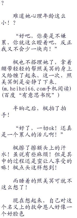 枫对照美冥这妞有些无语,原本只是为了缓和气氛跟她开开玩笑,谁知道一发不可收拾!这完全就变成一个小姑娘了吧!