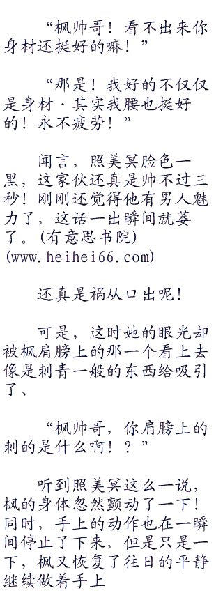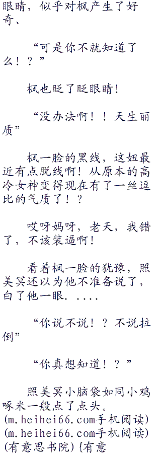 想到这里,照美冥小脸刷的一下变得红润了起来,瞪了瞪枫、