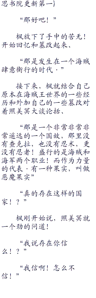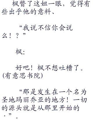 枫也不搭理她,知道一旦和这妞斗嘴就停不下来,而且她非要争到她满意才罢休!可是·每次吃亏的都是她!