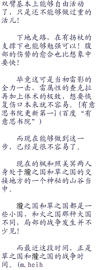 两人背靠着背,显得有些疲惫!枫觉得有些口干舌燥的,而照美冥则是听得津津有味。