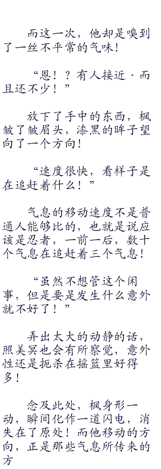 至于她相不相信枫所说的故事就是枫本人,只有照美冥自己知道!