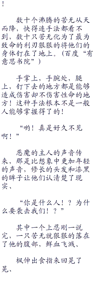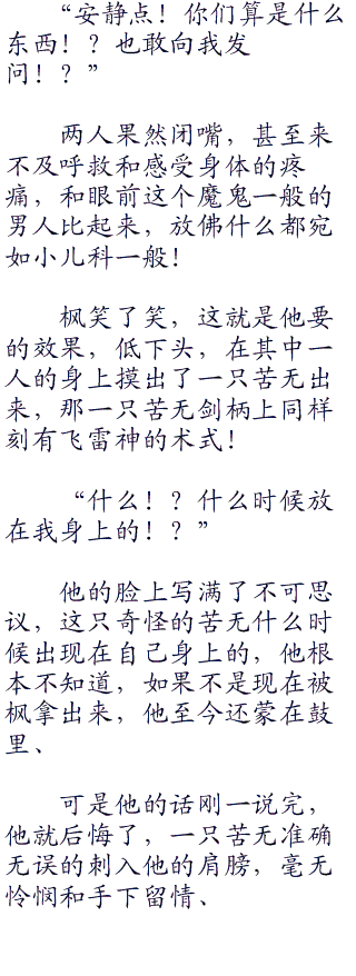 枫没有说完,而是随手拿起了一直苦无,苦无上刻满了飞雷神的术式!交到了香磷的手中、
