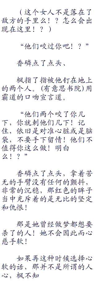 香磷的能力很奇妙,但是和他们自己的小命比起来,根本就没有可比性!牺牲了香磷而换来他们的安全。