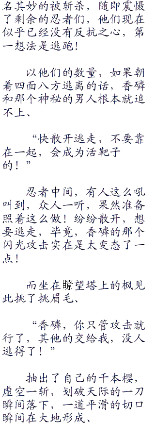 无数的呵斥之声从这些忍者的嘴里说出,无一例外是在呵斥香磷的行为有多么的不仁不义。